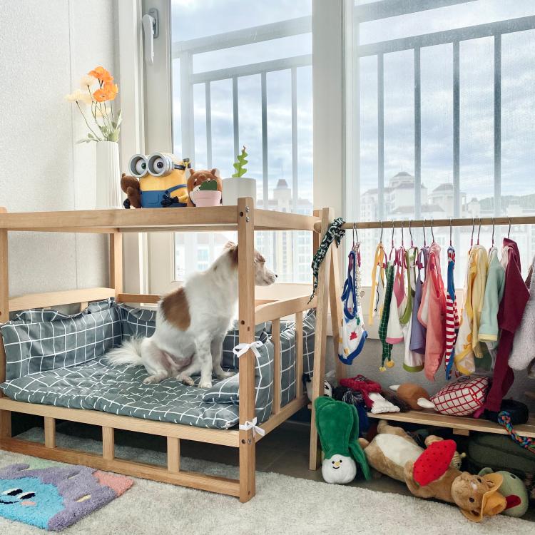 안방 베란다는 저희집 댕댕이 쪼코 공간이에요 ◡̈ 창문 밖 구경을 좋아하는 쪼코를 위한 공간이랍니다❤️ 장난감들은 정리하고 돌아서면 엉망진창이 되어요😂