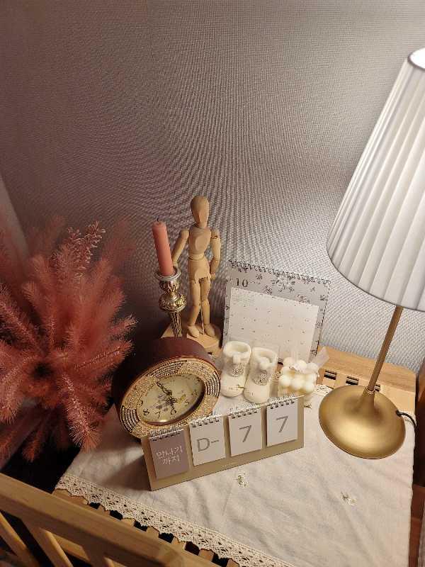 침대 옆에 있는 아기자기한 소품이에요