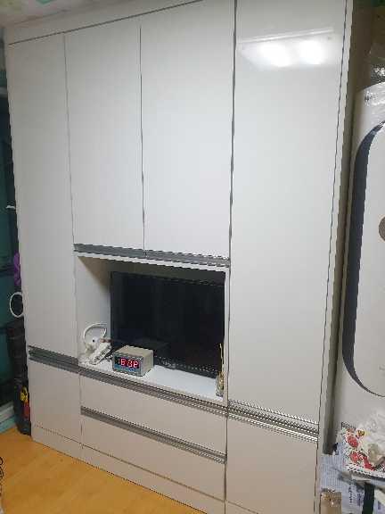 거실이 좁아 거실장 맞추고 옆에 에어컨 놓음