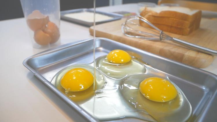 저는 초기 세척 과정을 완벽하게 끝내두고, 이제 맛있는 간식 만들어 볼거에요~ 먼저 댤걀을 풀어 달걀물을 만들어주고요~ 저는 몬테크리스토 2개(식빵 6장 기준) 달걀 3개를 사용했더니 조금 남았어요...ㅎㅎ