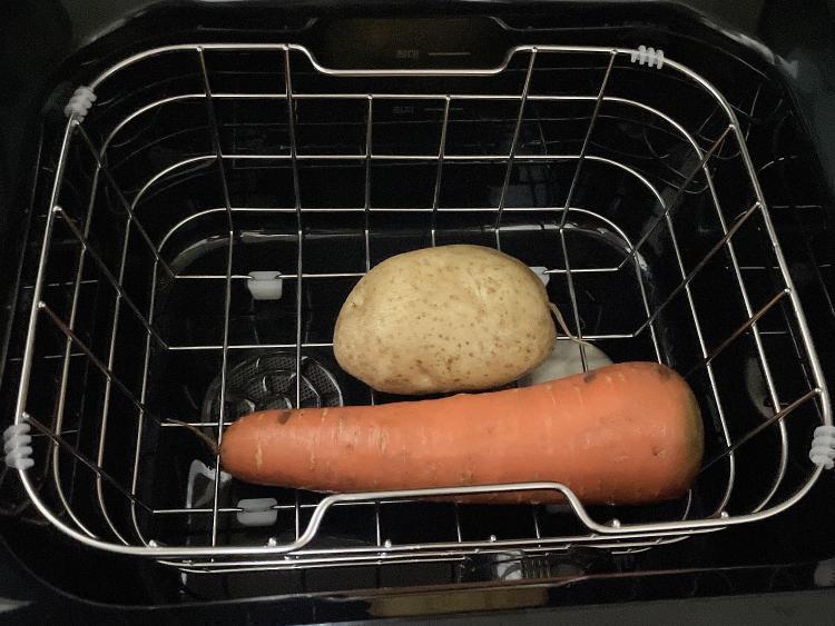 채소는 흙먼지를 한번 씻어서 세척했어요. 표면이 울퉁불퉁한 감자와 흙먼지가 잔뜩인 당근을 제가 평소대로 씻어 초음파 세척기를 돌려보았는데요.