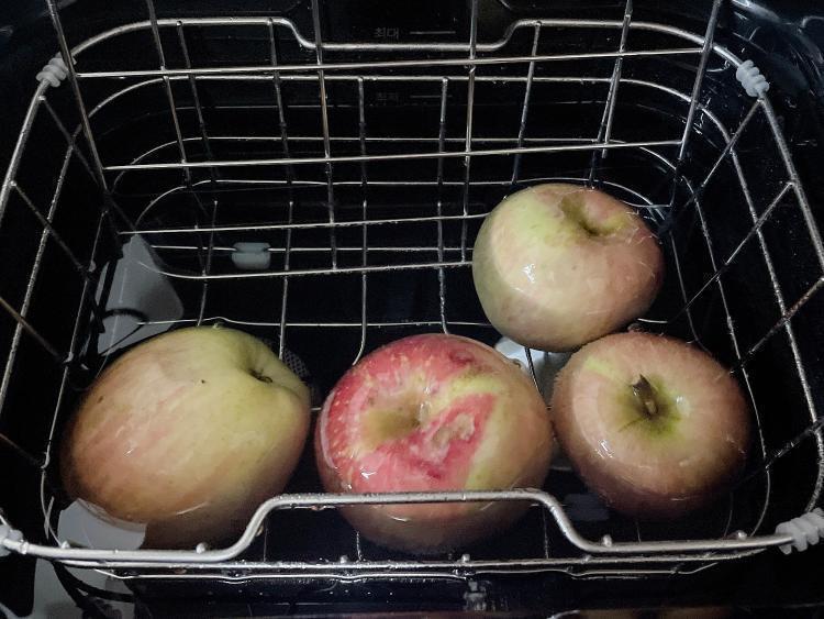 과일도 씻어봅니다. 평소에도 과일 꼭지의 굴곡진 부분은 손으로 씻기 참 어려웠는데 이제 안심하고 껍질채 과일을 먹을 수 있을것 같아요^^