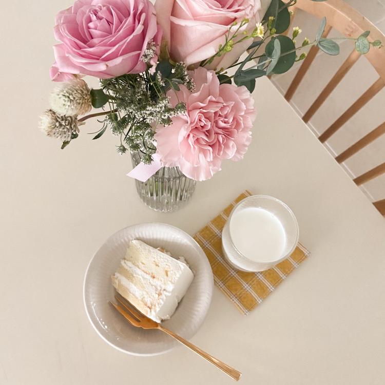 당 떨어지는 낮시간 생크림 케이크와 우유 한 잔 했어요 💗