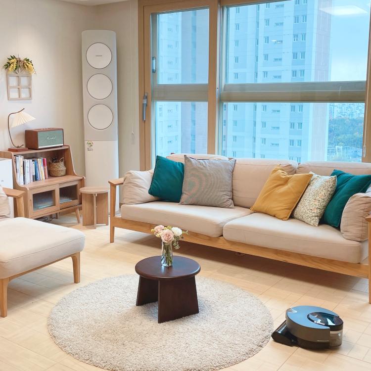 열심히 청소중인 로봇청소기:) 외출할때 돌려 놓고 나가면.깨끗해져 있는 우리집❤️