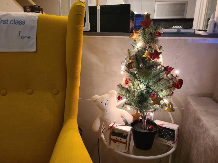 이케아 크리스마스 트리 아래 내년 태어날 아기의 애착인형을 선물로 놓아줬어요♥