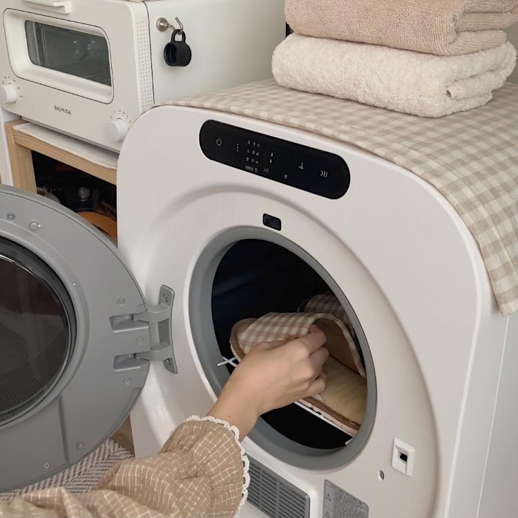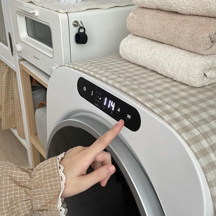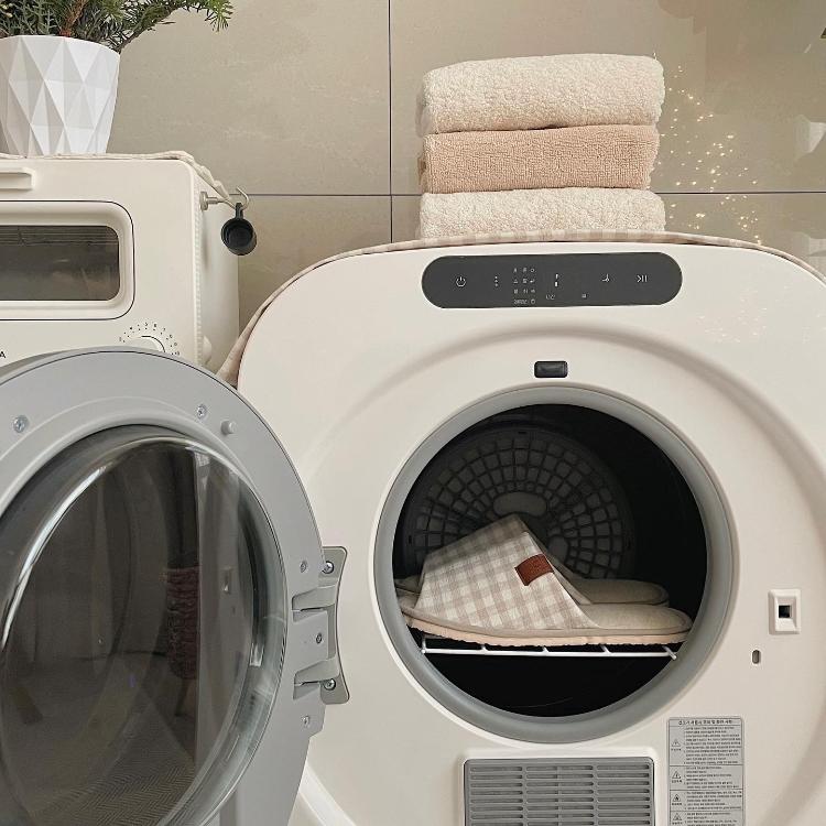 저진동/저소음으로 설계되어 제품 위에 물건을 올려 놓아도 되고, 전자레인지보다 작은 소리로 돌아가요. 전기세는 일반 건조기의 반값이라 비용 부담이 없답니다🙈