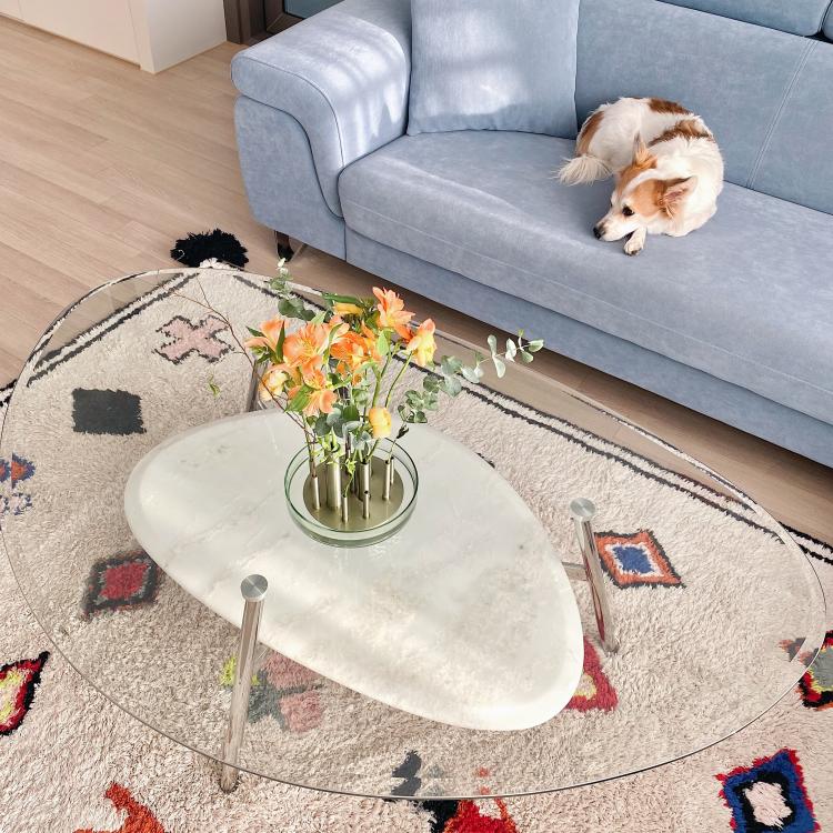 소파테이블에 올려둔 꽃이 참 예뻐요🌼