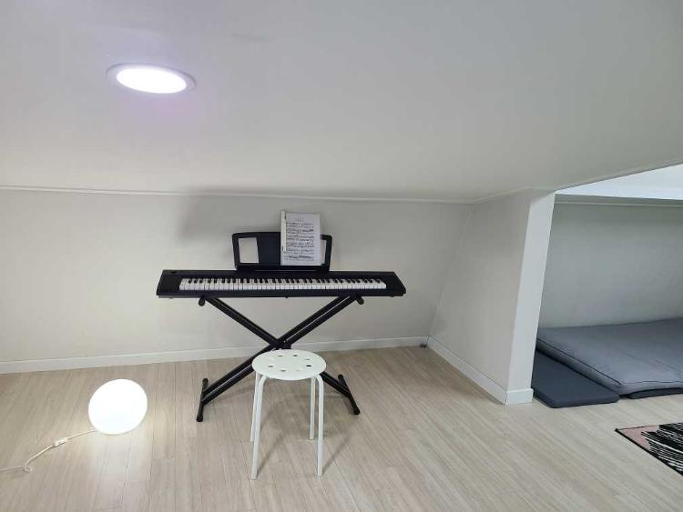 아기유모차를 선물받았더니 작은방이 좁아져서 건반을 2층으로 옮겼어요.