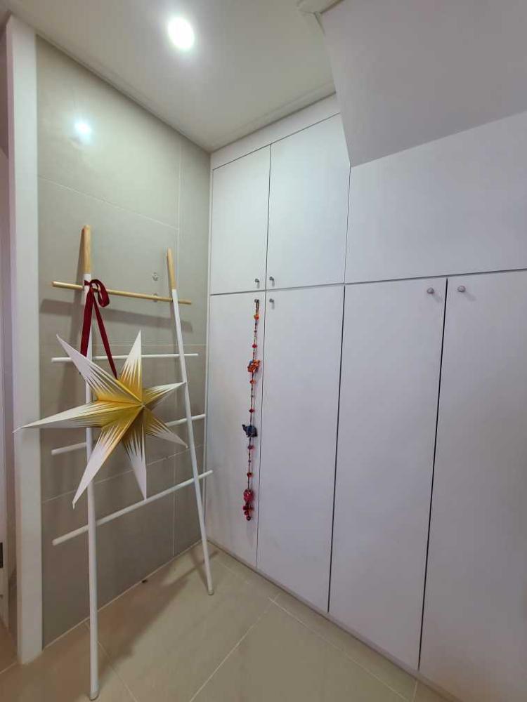 크리스마스 스타! 수납장 앞에 겨울이면 꺼내놓는 이케아 별갓등을 사다리 행거 앞에 걸어줬어요.