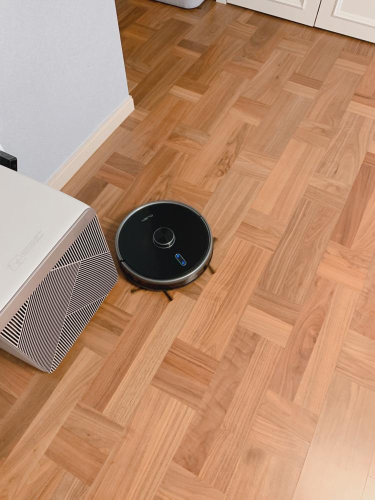 다른 가구들도 요리조리 잘 피하면서 너무나 우직하게 청소해주고 있는 클리엔 로봇청소기예요. LDS 5세대 + TOF센서의 2단계 프리미엄센서 기술을 사용해서 1cm 앞에 있는 장애물까지 완벽하게 감지해준다고 하는데 역시나 가구에 손상없이 청소를 잘 해주더라구요.