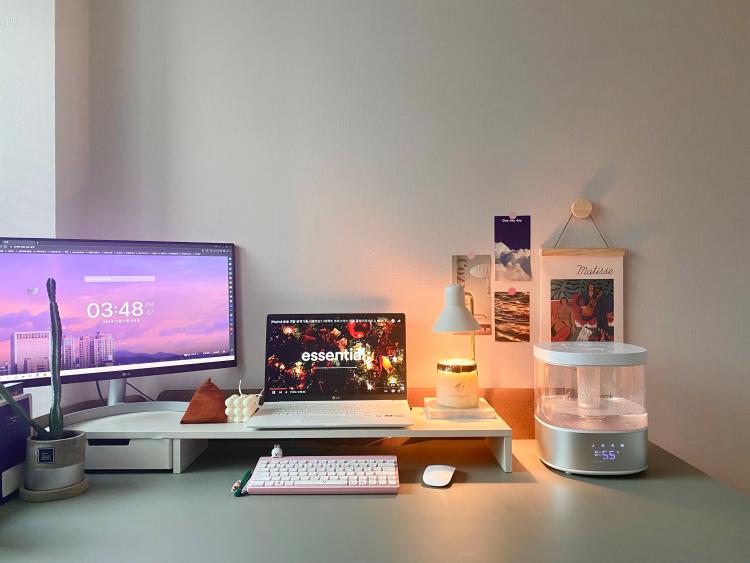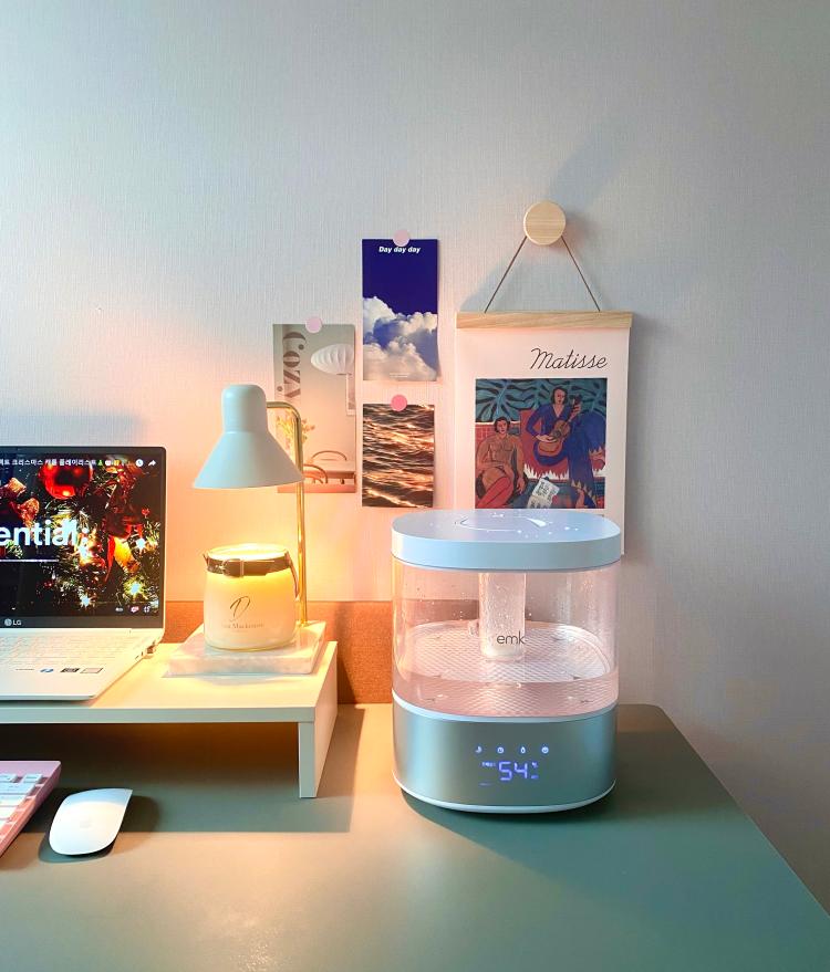 거실, 서재, 침실 어느곳에나 미니멀하게 어울리는 깔끔한 디자인에 스마트한 기능까지 :) 완벽했던 emk 가습기, 겨울엔 없어서는 안될 꿀템입니다😀