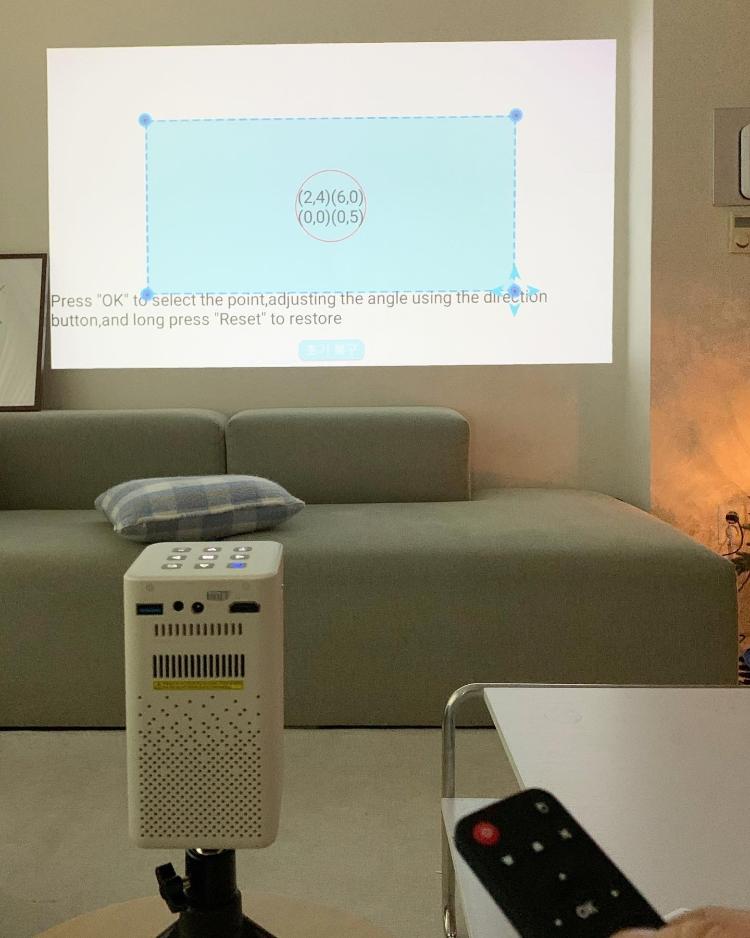 오토 키스톤 기능과 줌아웃 기능으로 반듯한 화면을 만들 수 있어요.
