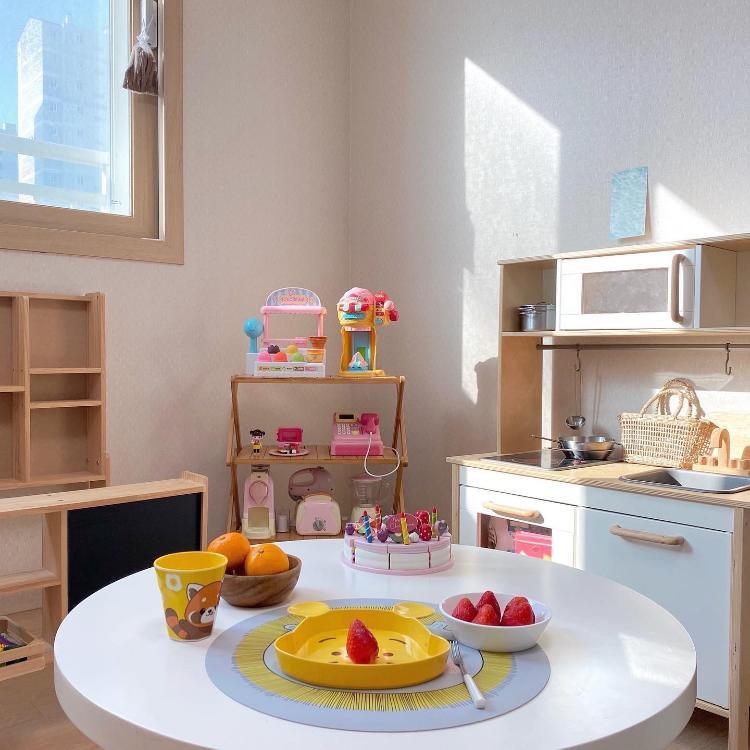 우드 가구와 알록달록 장난감으로 꾸며진 우리 둘째 놀이방