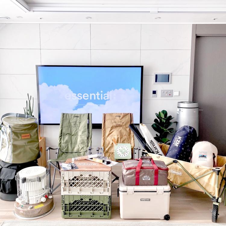 캠핑 입문하려고 캠핑장비부터 모으는 중이에요 ◡̈ 장비들 구매한거 펼치니 홈캠핑이 따로 없어요😂