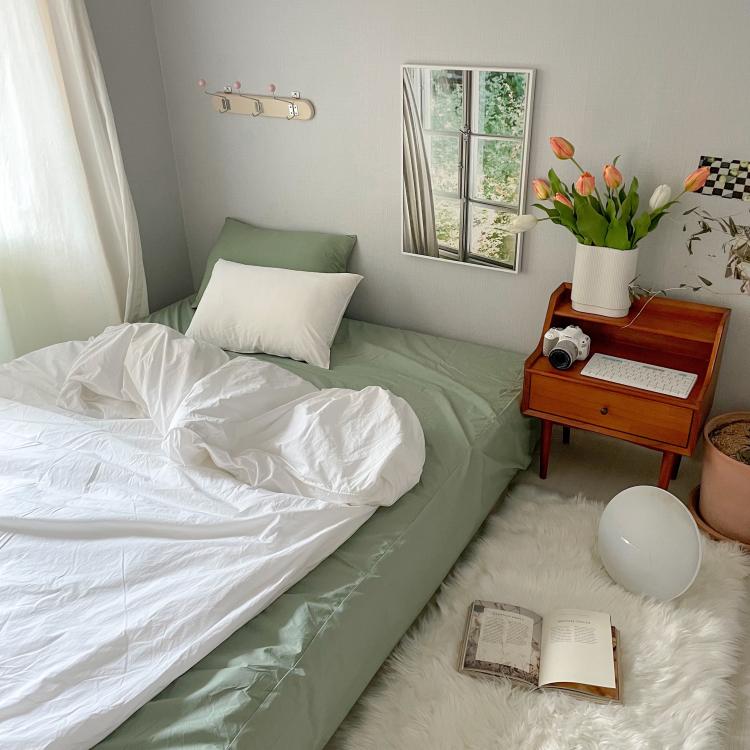 침대구조를 바꾸고 봄맞이 침구교체도 해주었어요:)