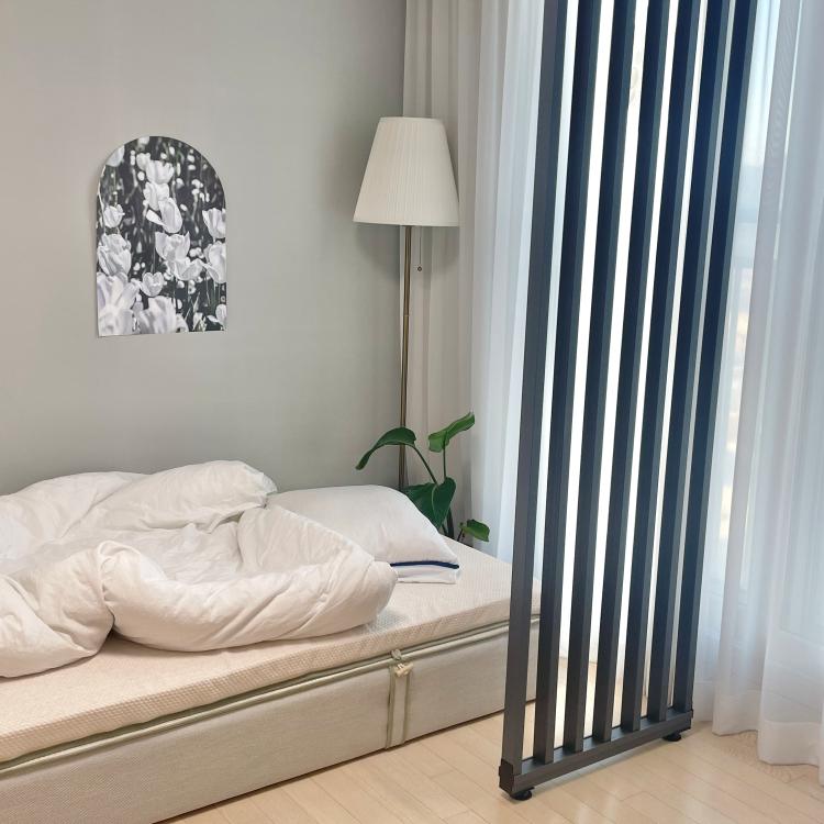 침실공간도 가벽을 새로 만들어봤어요! 공간 분리가 되어 좀 더 수면에 집중할 수 있을것 같아요🥰