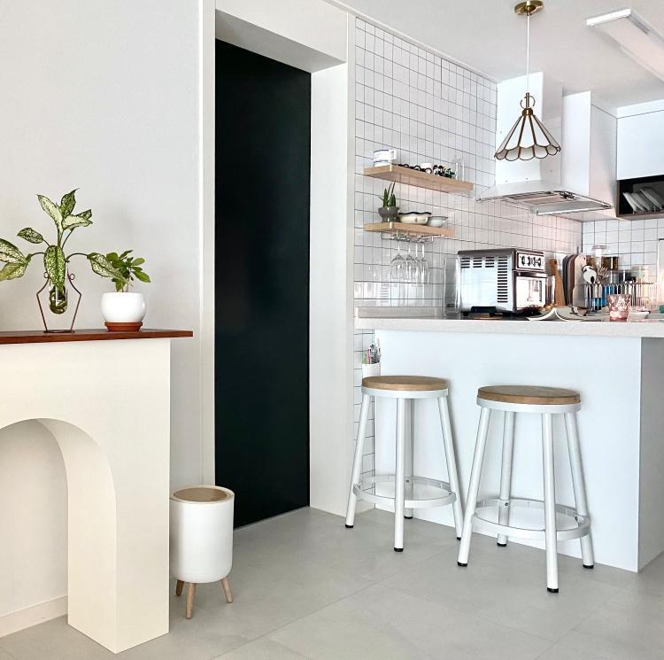 아일랜드 식탁이 보이는 주방의 모습