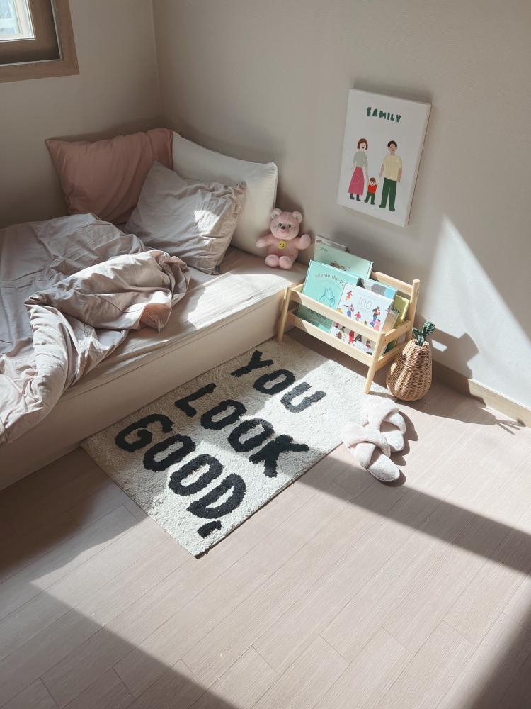 게스트룸으로 꾸며본 방에는 햇살이 잘 들어서 낮잠자기에 좋아요! 침대 옆 작은러그를 두었더니 뭔가 올려두기도 좋고 침대에 걸터앉을때 발도 폭신하네요 : )