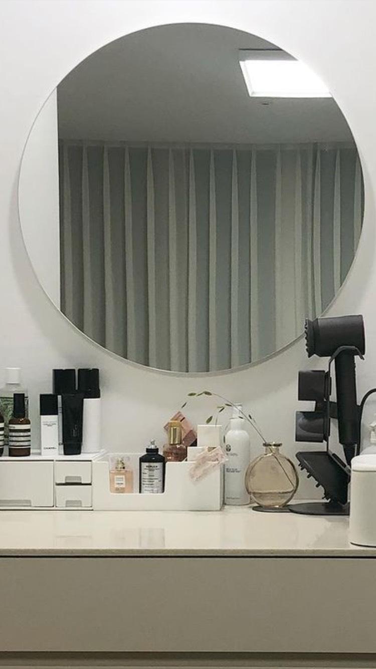 화장대에 그냥 거울말고 타원형거울을 놓으면 여성스러운 인테리어 더 살릴수있어요.