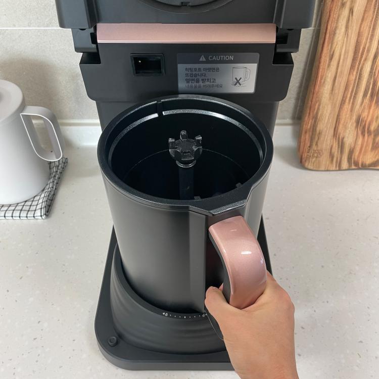 부피가 작아 싱크대 상단 구석에도 놓을 수 있고, 커피 포트형식으로 꺼내기 편리하답니다.