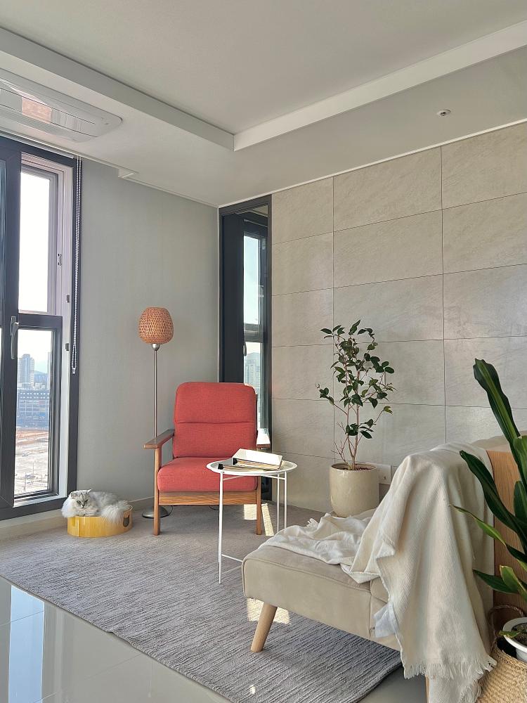 미세먼지때문에 뿌옇지만 잠시 환기 타임😂 공기청정기 쉴 틈이 없네요! 따뜻한건 좋아도 먼지는 노노~ㅠㅠ 기분이라도 맑게 포인트 되는 1인 소파로 산뜻하게 봄맞이 해요❤️❤️