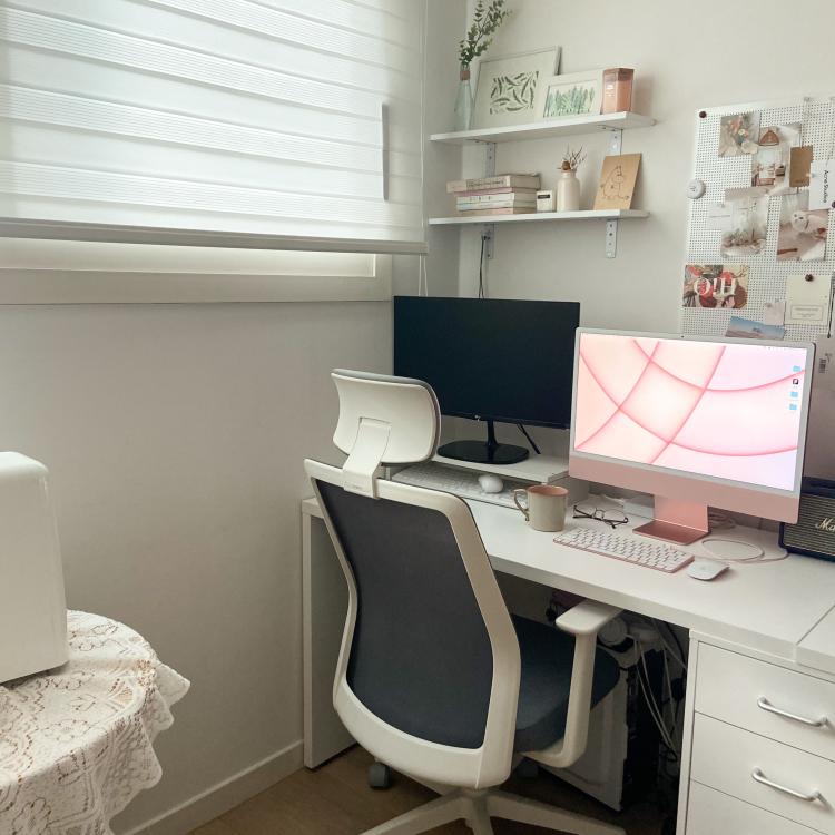 제가 재택근무하는 서재에요. 고민하고 또 고민하다 아이맥을 데려왔는데