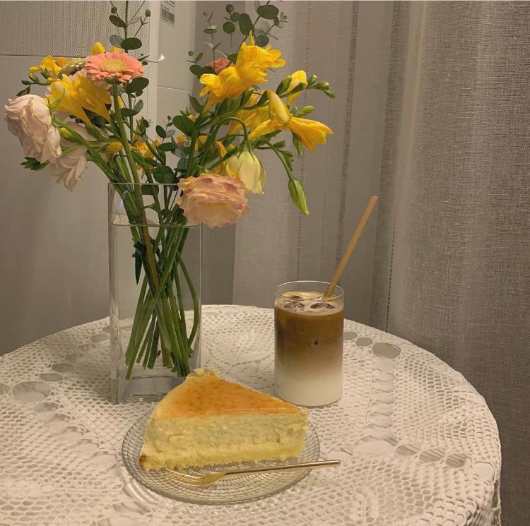 밤에 먹는 케이크와 커피는 더 꿀맛 ㅎㅎ 봄 느낌 나도록 침실 한켠에 마련한 홈카페 존❤️