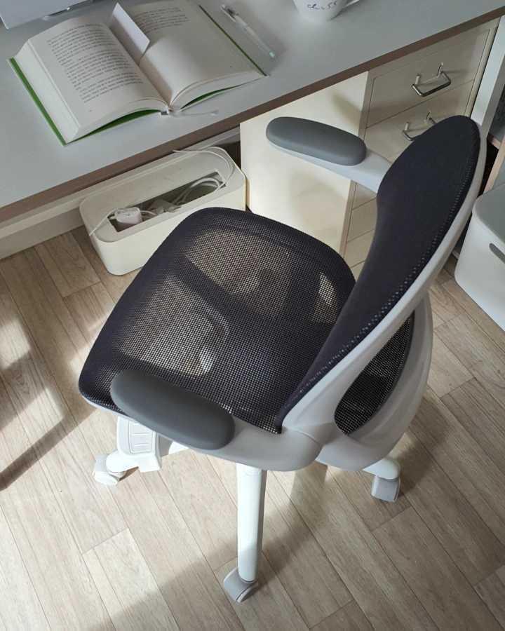 일년사이에 키도 훌쩍 커서 기존에 쓰던 의자는 엉덩이부터 작은 느낌이라 의자까지 풀로 바꿨어요! 올즈 밤비 풀메쉬 학생의자 그레이 색상인데 아이의자 느낌나는 동글동글한 디자인이면서도 그레이색이라 남자아이방에 아주 잘 어울려요!! 🖤
