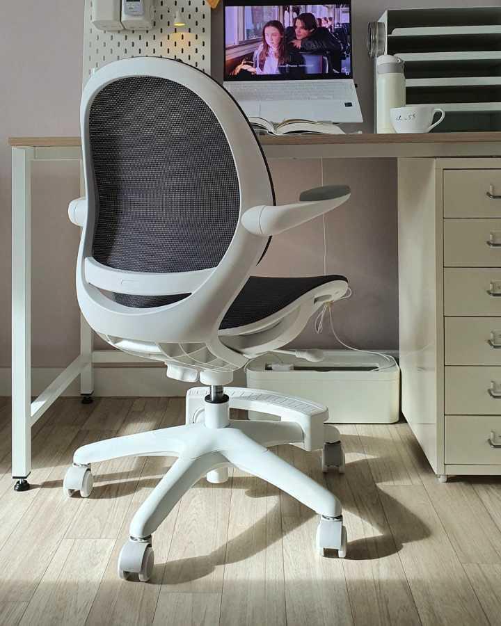 학생의자인데도 풀메쉬 소재라 여름에도 아이가 불편없이 사용할 수 있을 것 같구요. 일단 의자에 체중이 실리면 의자가 고정이 돼서 안움직이거든요! 엉덩이힘 기르는데 도움이 될 것 같아요. 의자가 막 움직이면 공부에 집중못하니까요😊👍👍
