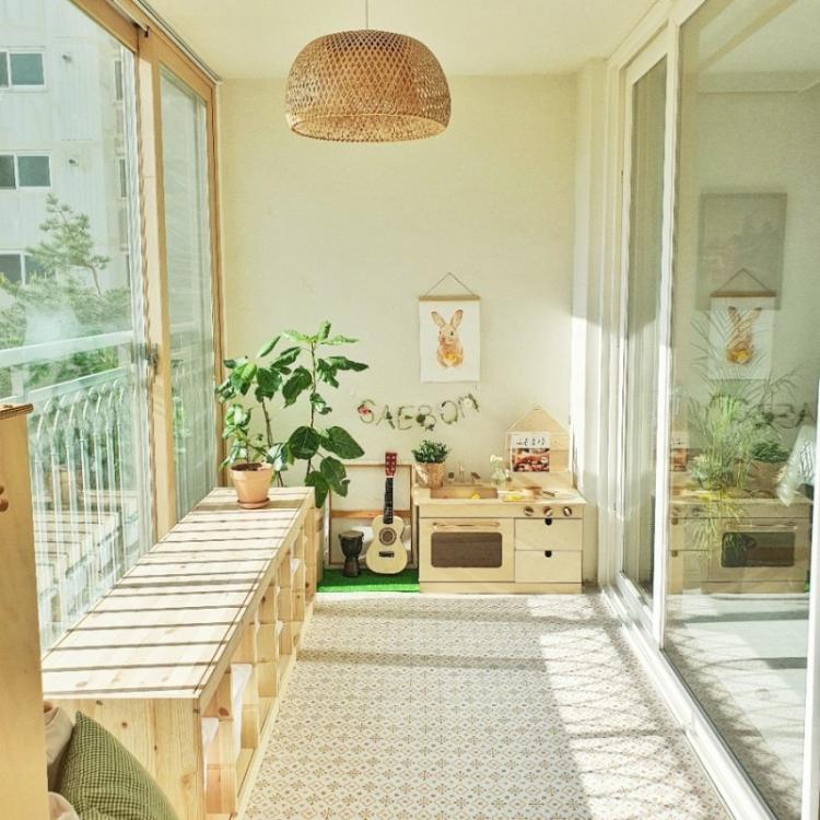 봄햇살이 비취는 발코니에 아이공간으로 꾸며주었을 때 모습이에요:)
