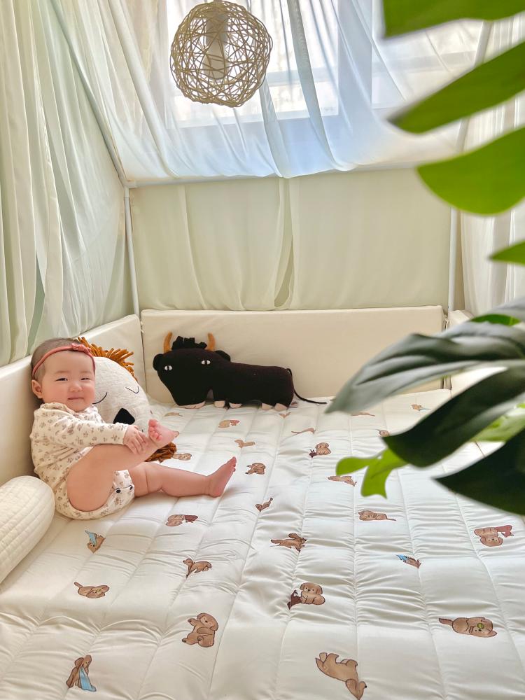 이제 날씨가 따뜻해지 아이방에 쿨매트를 깔아줬어요. 리트리버 무늬의 신상 아기쿨매트인제 포근하면서도 차갑지 않고 시원해서 아이도 좋은가봐요