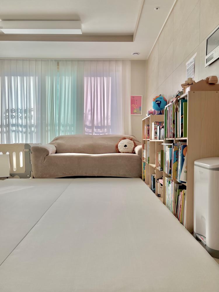 아기 매트를 바꾸어주었어요. 같은 브랜드인데도 다른 커버로 바꿨더니 집 분위기가 달라지네요