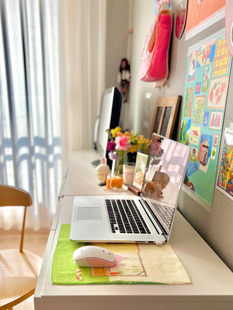 별도의 테이블 없이 수납장 위에 노트북을 두고 작업하곤해요