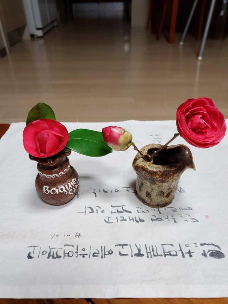 동백꽃을 미니화병에 꽂아봤어요 앙증맞죠