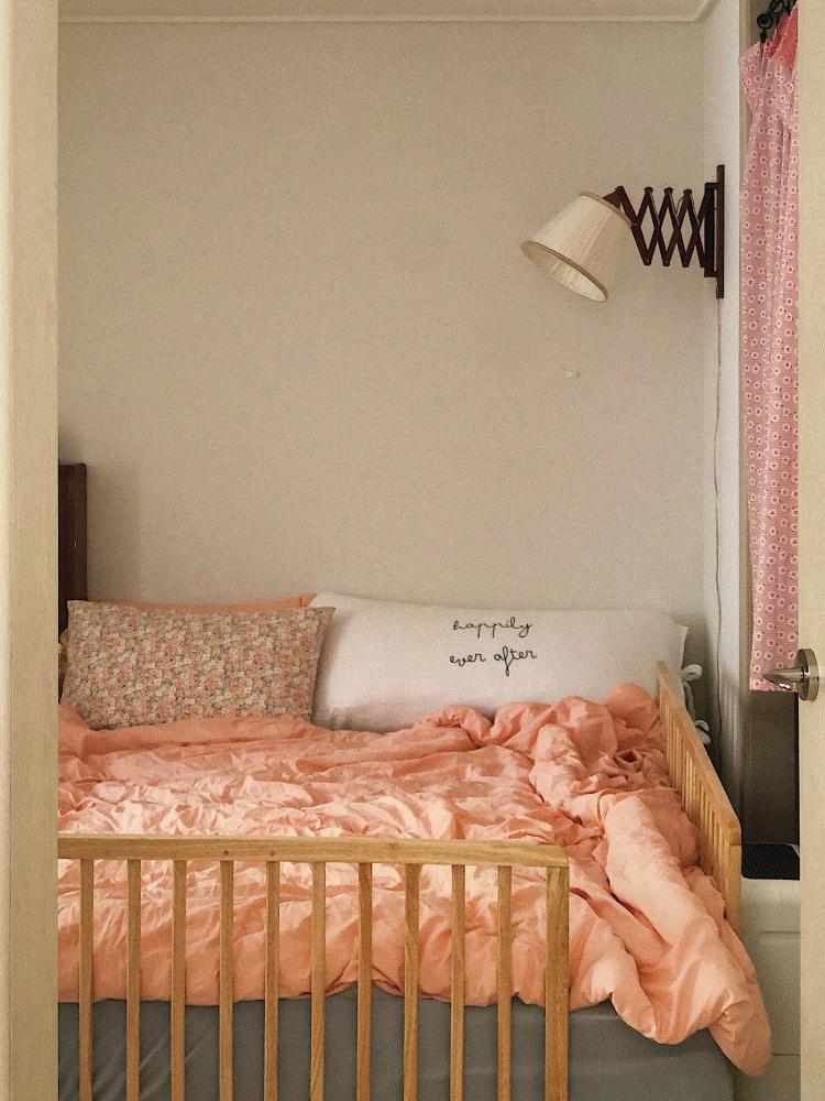 첫째 분리수면 실패 후 안방에서 같이 자게 되었어요. 튼튼한 가드로 뒹굴 거리는 아이 지켜주기