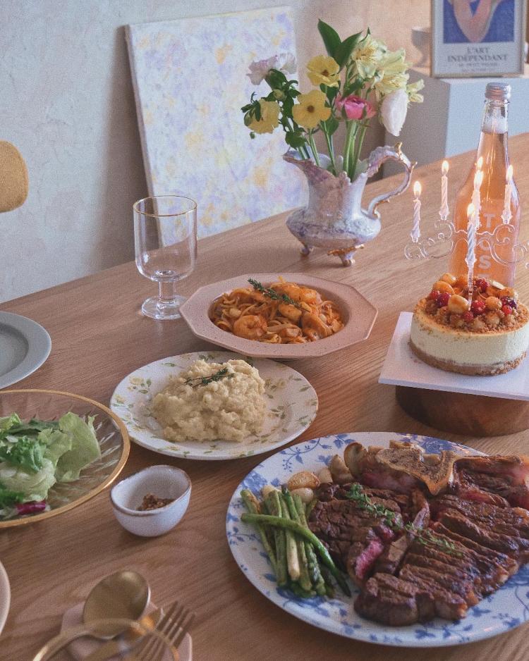 남편이 만들어 준 티본스테이크와 쉬림프파스타는 훌륭했어