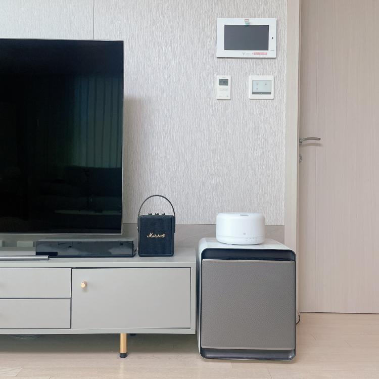 작은 가전들 공간🤍 스피커와 공기청정기, 가습기는 필수에요!:)