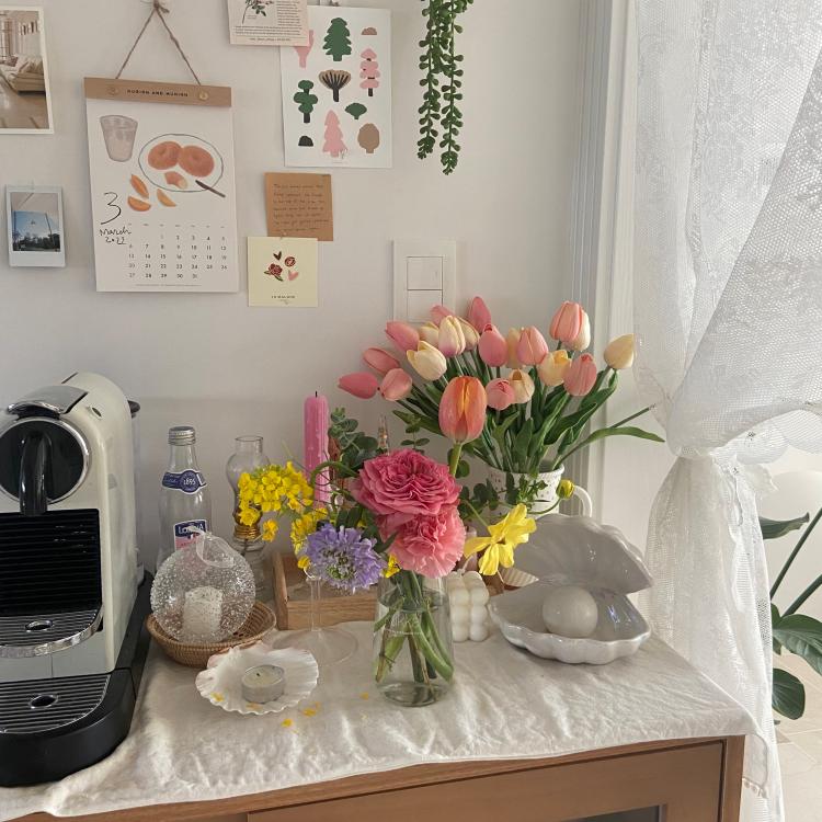 꽃이 있으면 우리 집 홈카페도 더욱 화사해져요 🥰❤️