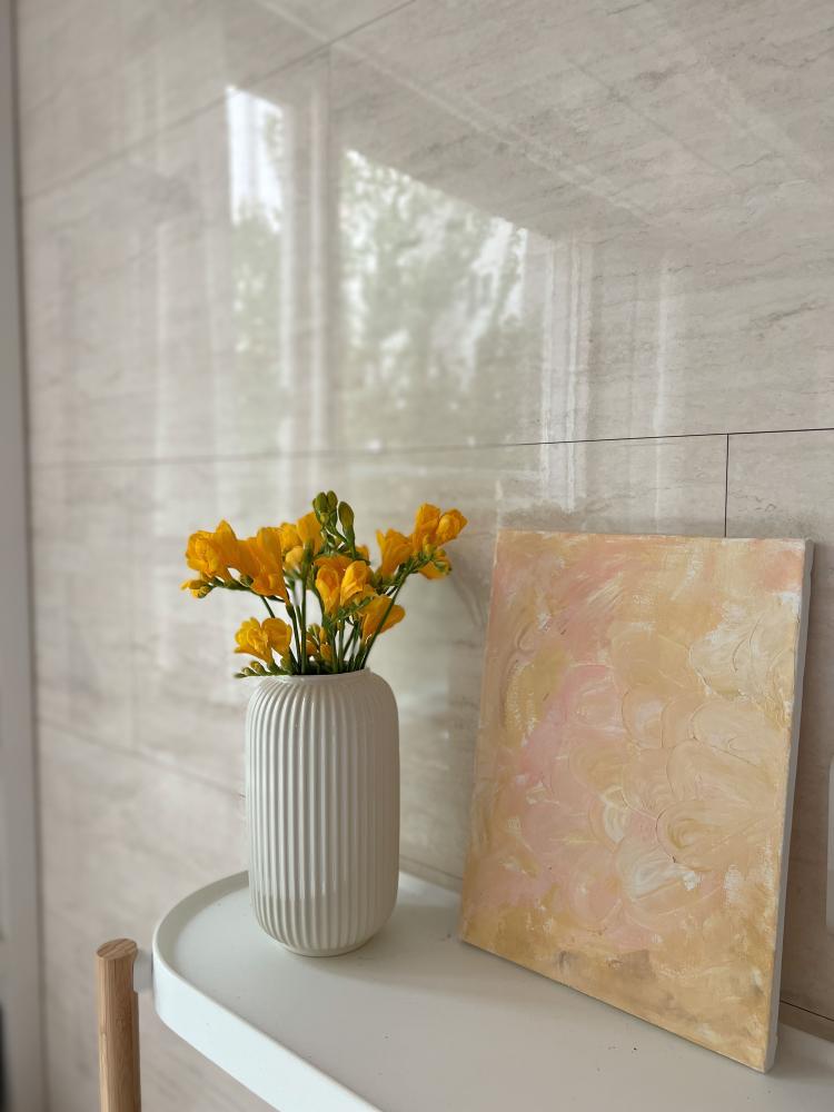 하이홈스 웰컴기프트 백드롭페인팅해봤어요! 음악 들으면서 어렵지않게 마음가는대로 붓이랑 나이프랑 움직여주니까 태교도 되고 좋더라구요! 저는 나이프 터치감이 더 예쁘던데, 다들 어떻게 완성하셨어요? ☺️