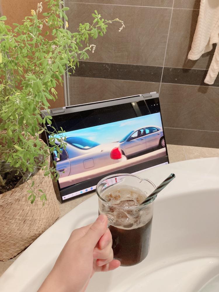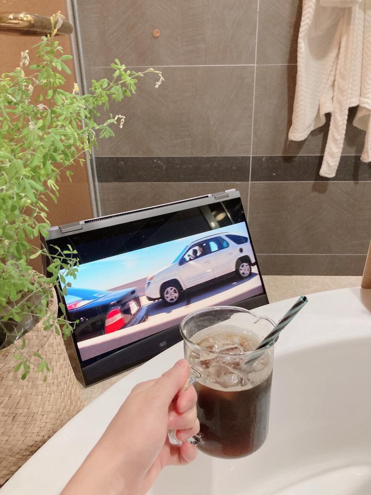 원하는 장소에 원하는 각도로 접어서 사용할 수 있는 삼성 노트북 북플렉스 덕분에 어디서든 편하게 영화를 즐길 수 있어요:)