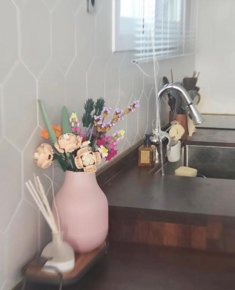 싱크 옆에 지지않는 꽃을 두었어요🌸