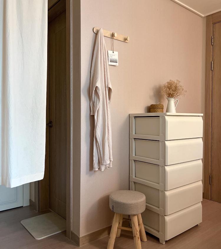 침실에 우드꼭꼬핀 하나 걸었을뿐인데 분위기도 좋아지고 잠옷 정리도 간단해졌어요. 전에는 침대랑 벽사이에 끼워뒀었는데, 옷도 많이 구겨지고 지저분해보였는데 정돈이 되어보여서 만족합니다! 숨기는 것만 정리가 아닌 보여서 인테리어 소품이 되는 변화도 있는 것 같아요🤍