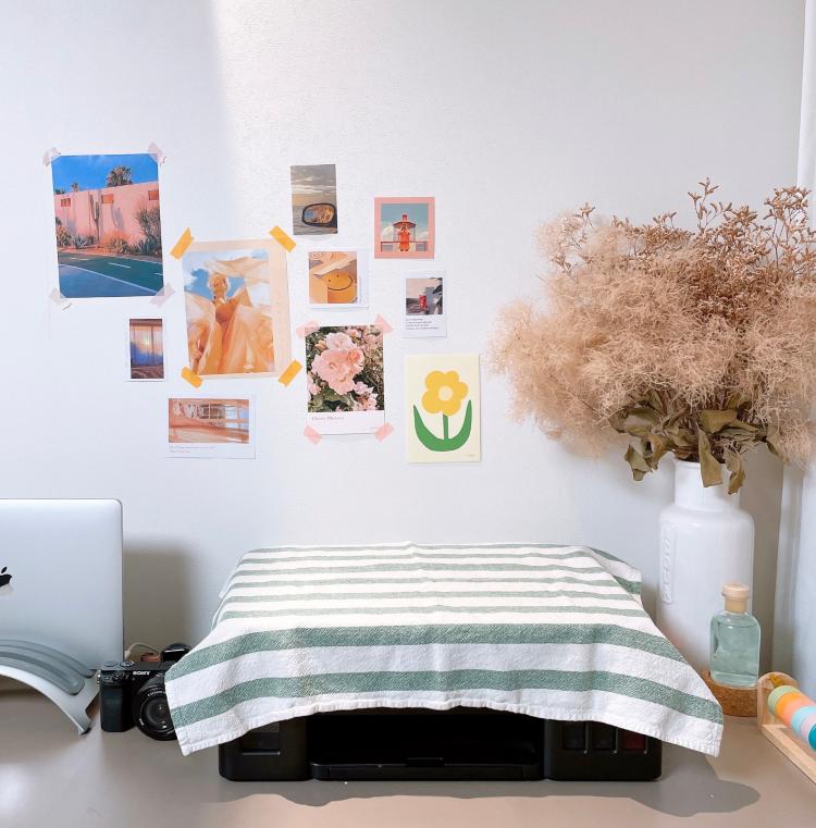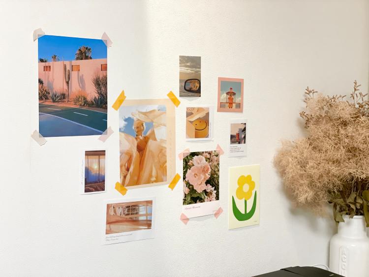 포스터&엽서를 마스킹테이프로 벽면에 붙여주었더니 심심했던 공간이 화사해졌어요.