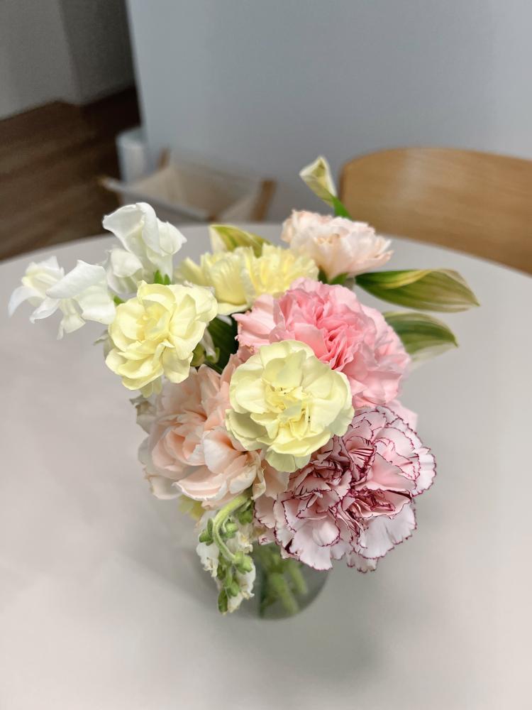 가정의 달을 맞아 주방 공간에 카네이션을 놓아봤어요. 꽃 하나로 집안 분위기가 확 달라져요:)