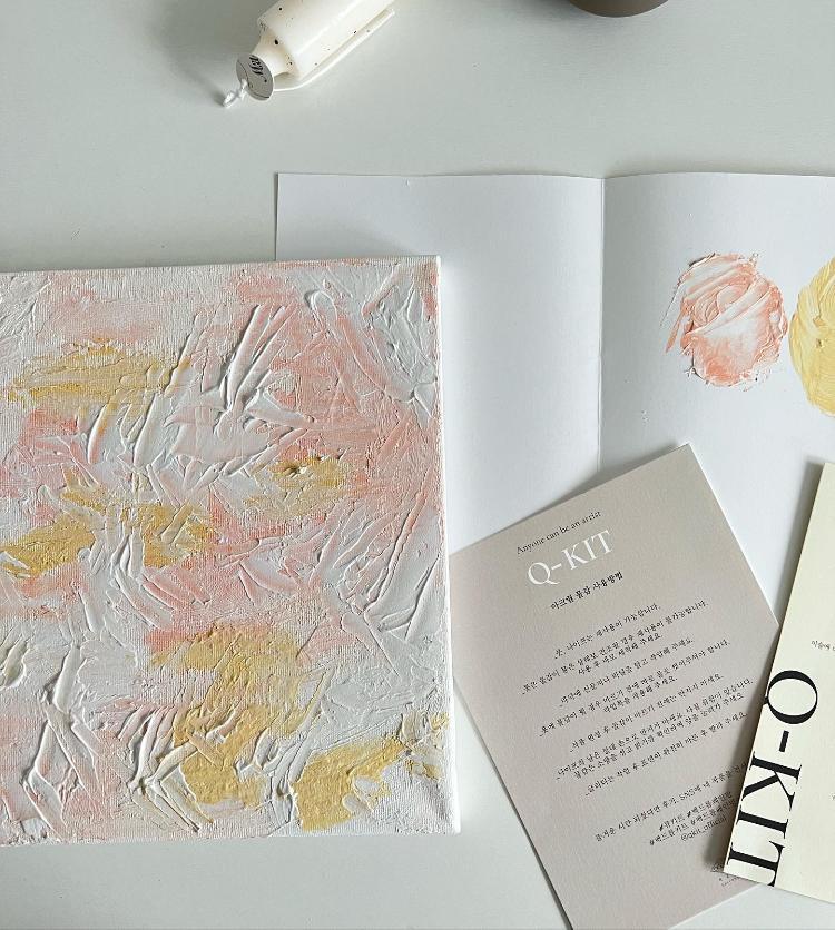 큐키트 백드롭 페인팅은요. 연예인들이 자주 방문하는 화실의 대표님이 개발한 키트라고 해요. 손을 조금 더 보긴 해야하지만, 전 넘 잼나서 20분만에 한점 그렸네요. 누구나 도전 가능한 난이도니 한번 도전해 보시길😊