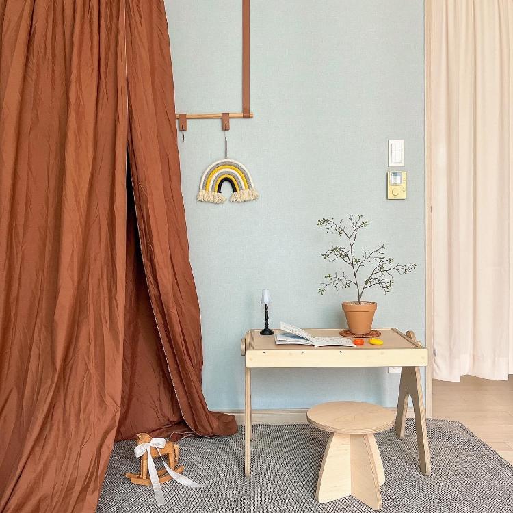 톤다운 브라운 컬러와 따뜻한 원목가구가 있는 아기방이에요