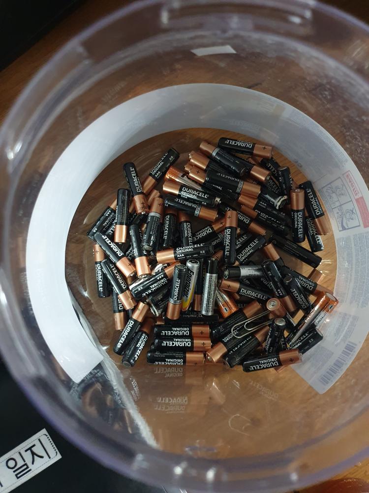 다 쓴 건전지 예전에는 그냥 쓰레기통 버렸는데 이제는 모아서 건전지 수거함에 버려요