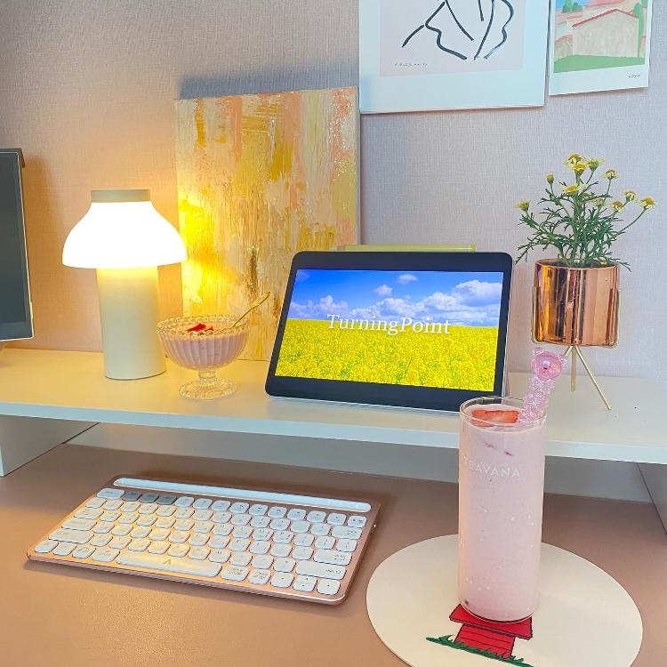 여름이 느껴지는 무더위에 시원하고 달콤한 딸기라떼를 만들어 먹었어요 ~ 잠시 서재에서 홈카페 분위기로 시원한 여름음료를 즐기니 힐링이 따로 없어요:) 봄에서 또 여름으로 향하고 있는 것 같은 작은 변화에요!