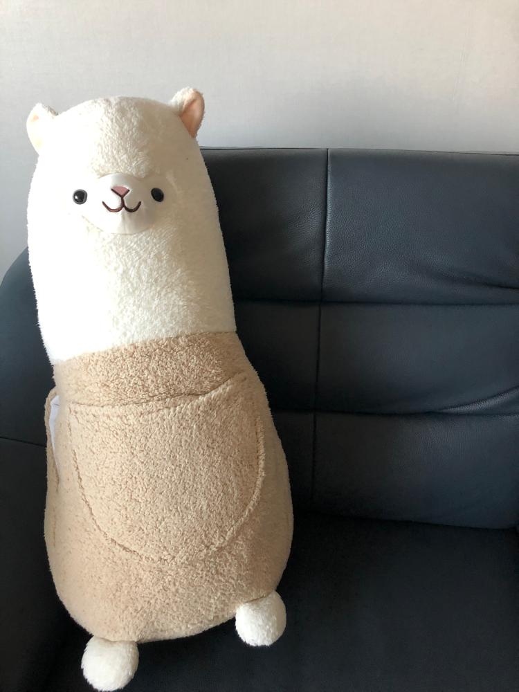 썰렁한 까만 쇼파에 귀여운 알파카 인형을 올려보았어요 좀 더 아늑하고 편안한 집이 되었어요!
