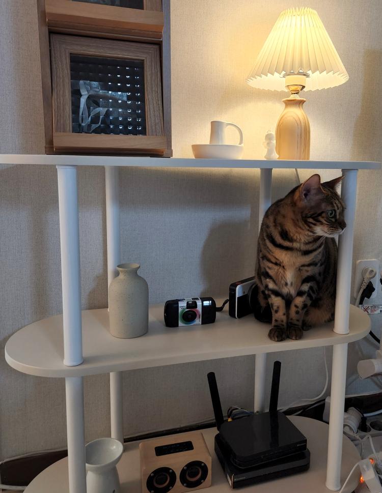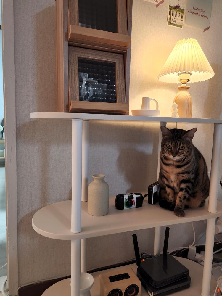 오브제 올려서 예쁘게 정리해둔 공간에 냥아치 한마리..
